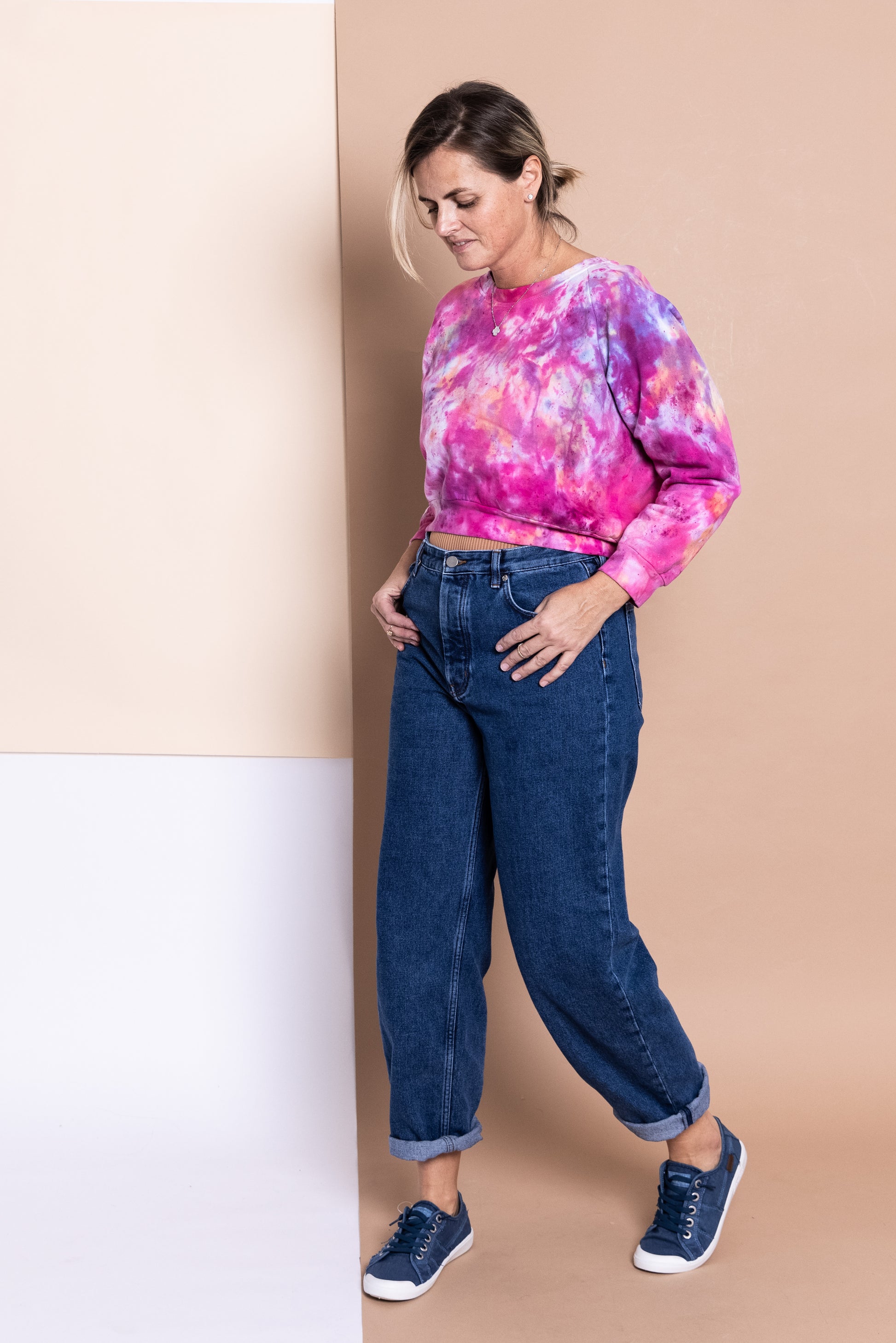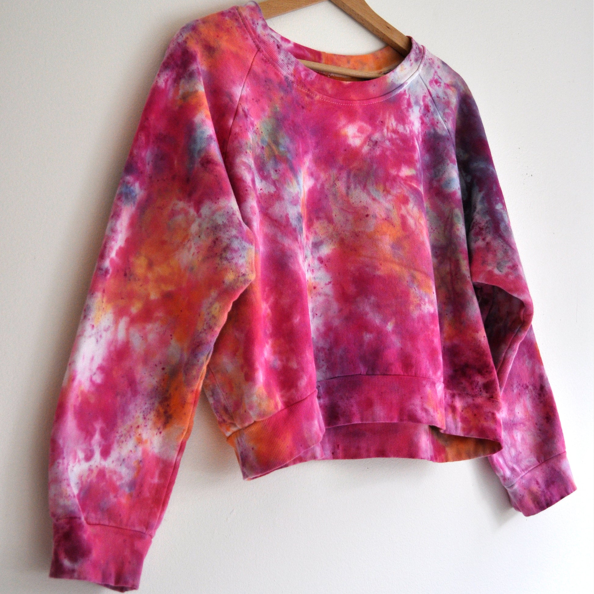 Pink, purple and orange walk into a bar... Made from soft and toasty organic cotton fleece manufactured locally in Oakville our new "Berry Explosive" sweatshirts are hand dyed by me with professional, low impact dyes to lift your mood. Cut, sewn and dyed with love in Toronto.